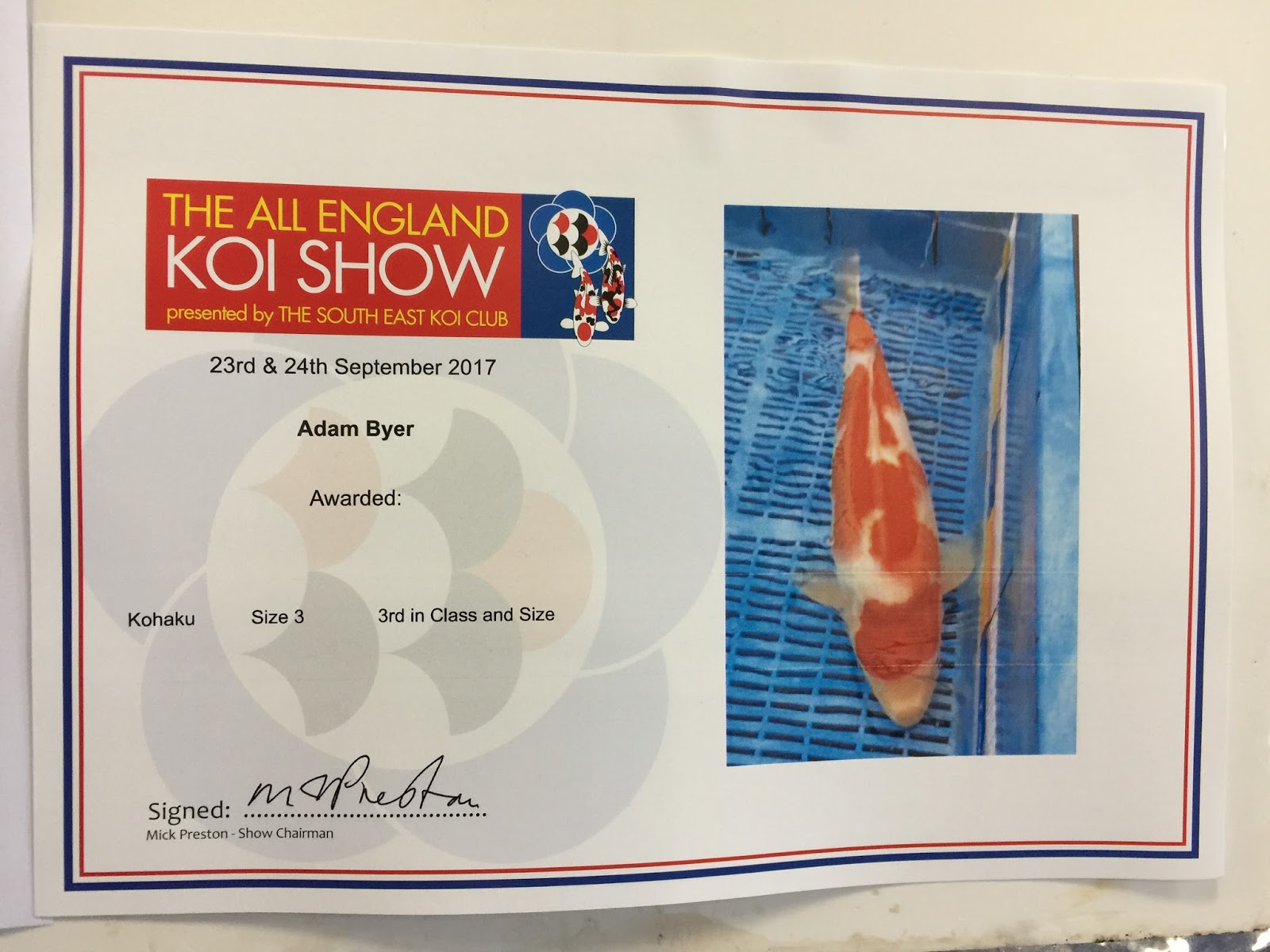 3rd in size 3 kohaku at the 2017 All England koi show!