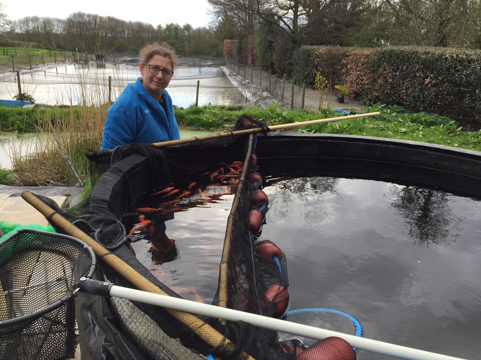 Amanda's made us a new seine net that's sized to be a good match for netting up the black tubs. Here it is being put to good use on Saturday: