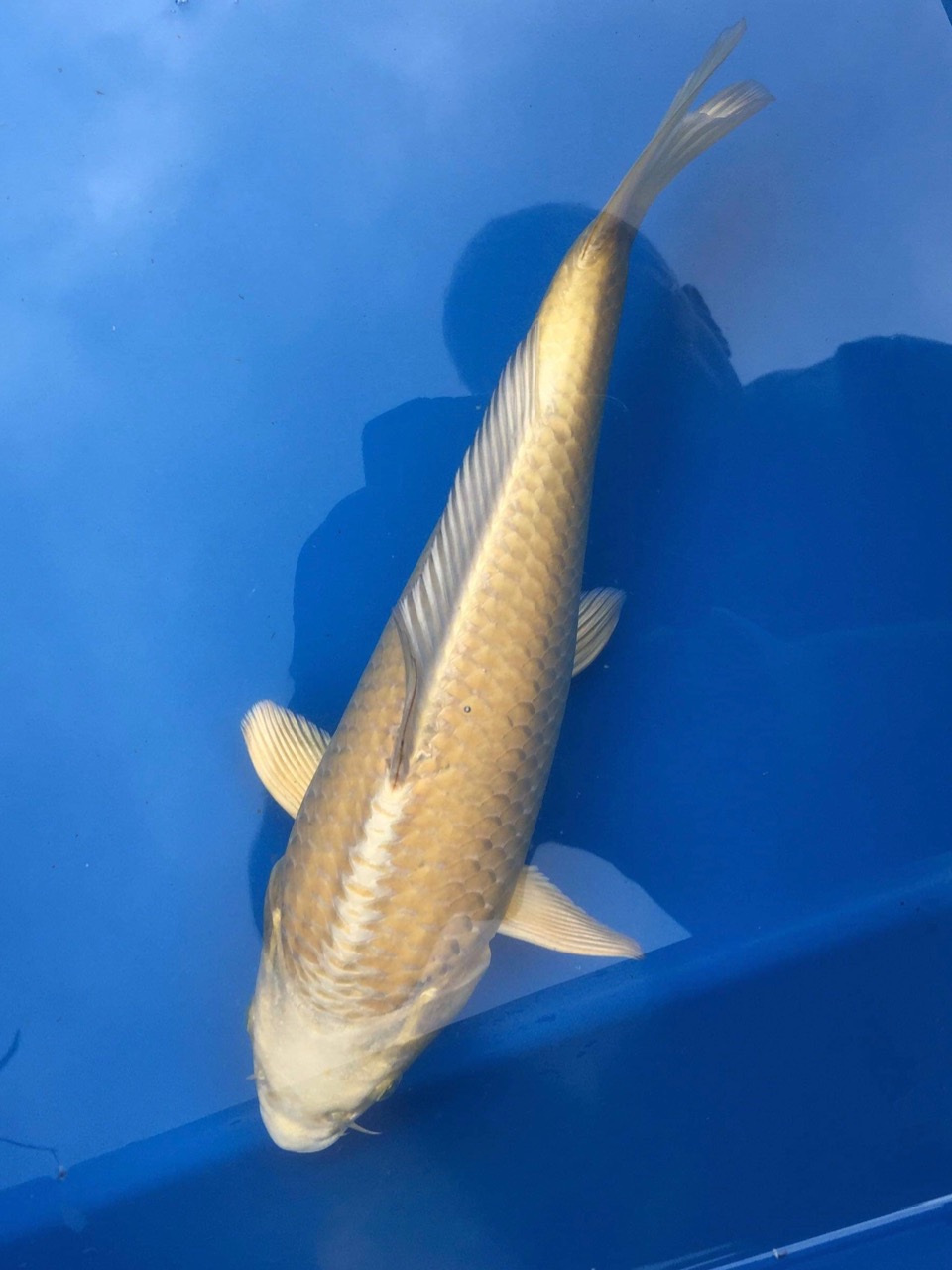 The other result was a bit of a surprise.. because it was with one of our Mukashi Ogons. These Ogons have become much loved in a very short space of time… not only by ourselves, but also our customers. The kind of feedback we regularly get from our customers on these koi is… ‘ I took it home and it was on the food in minutes’, and the other message that we keep getting is, ‘ it fights off the larger koi to get to the food first!’. So… they are going really well but from a show perspective, they don’t fit well into any of the metallic show classes which makes them uncompetitive against either single colour metallic in the hikari muji show variety group, or patterned metallic koi in the hikari moyo show variety group. So, it was with much surprise that Andy Finch placed 2nd out of 9 koi in size 2 hikari muji… which is the show class for single coloured metallic koi. A really excellent result with Andy’s koi of just 11 months old! And backs up the confidence that we and our customers have been taking from our 2018 Mukashi Ogon spawning which was the one behind our ‘shooting stars’ event last autumn. We will be re-running that spawning this year…