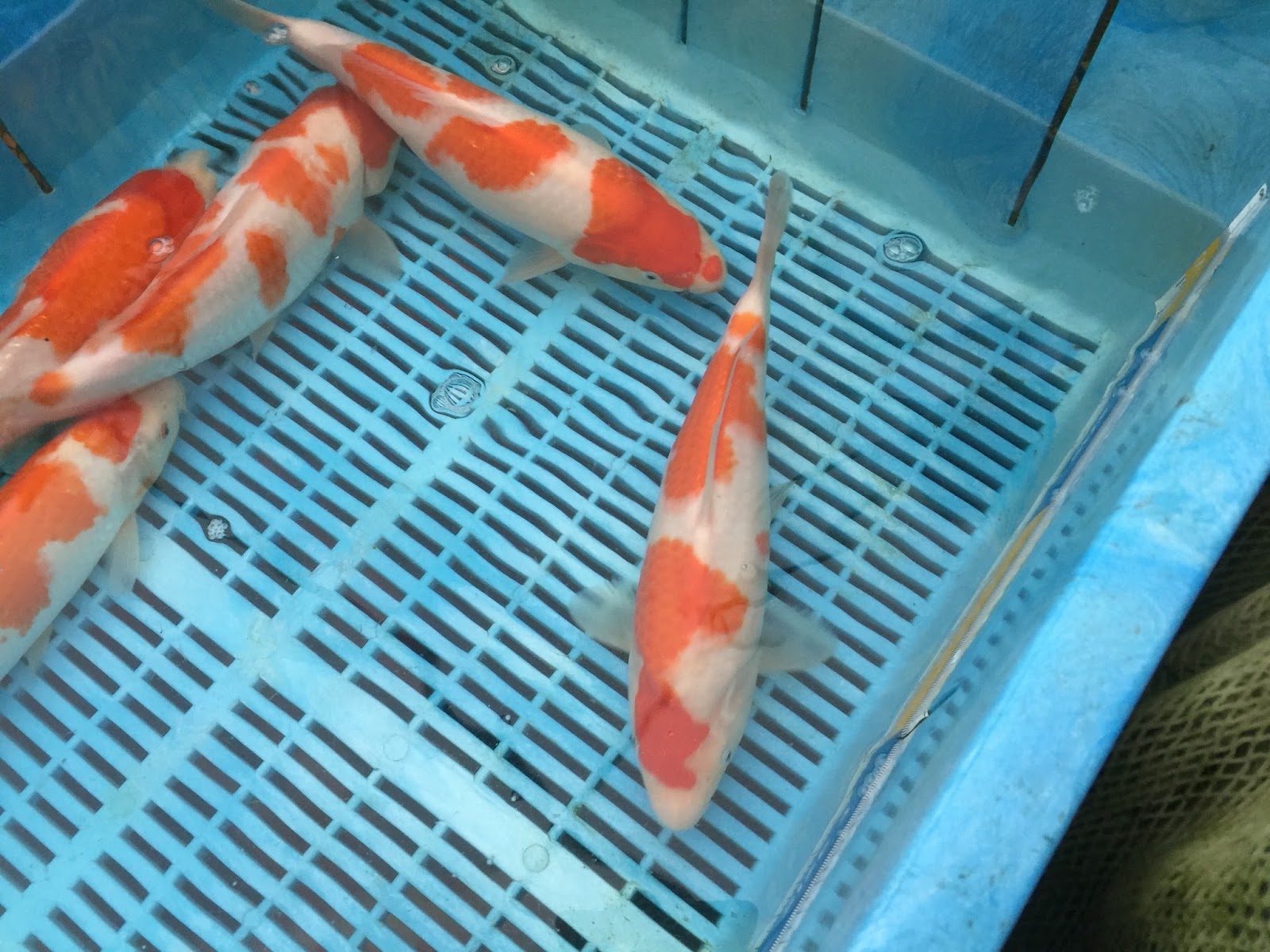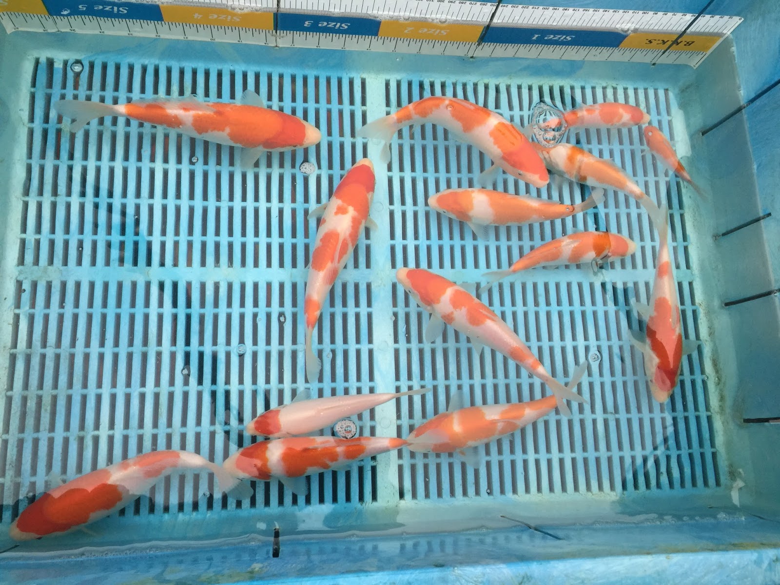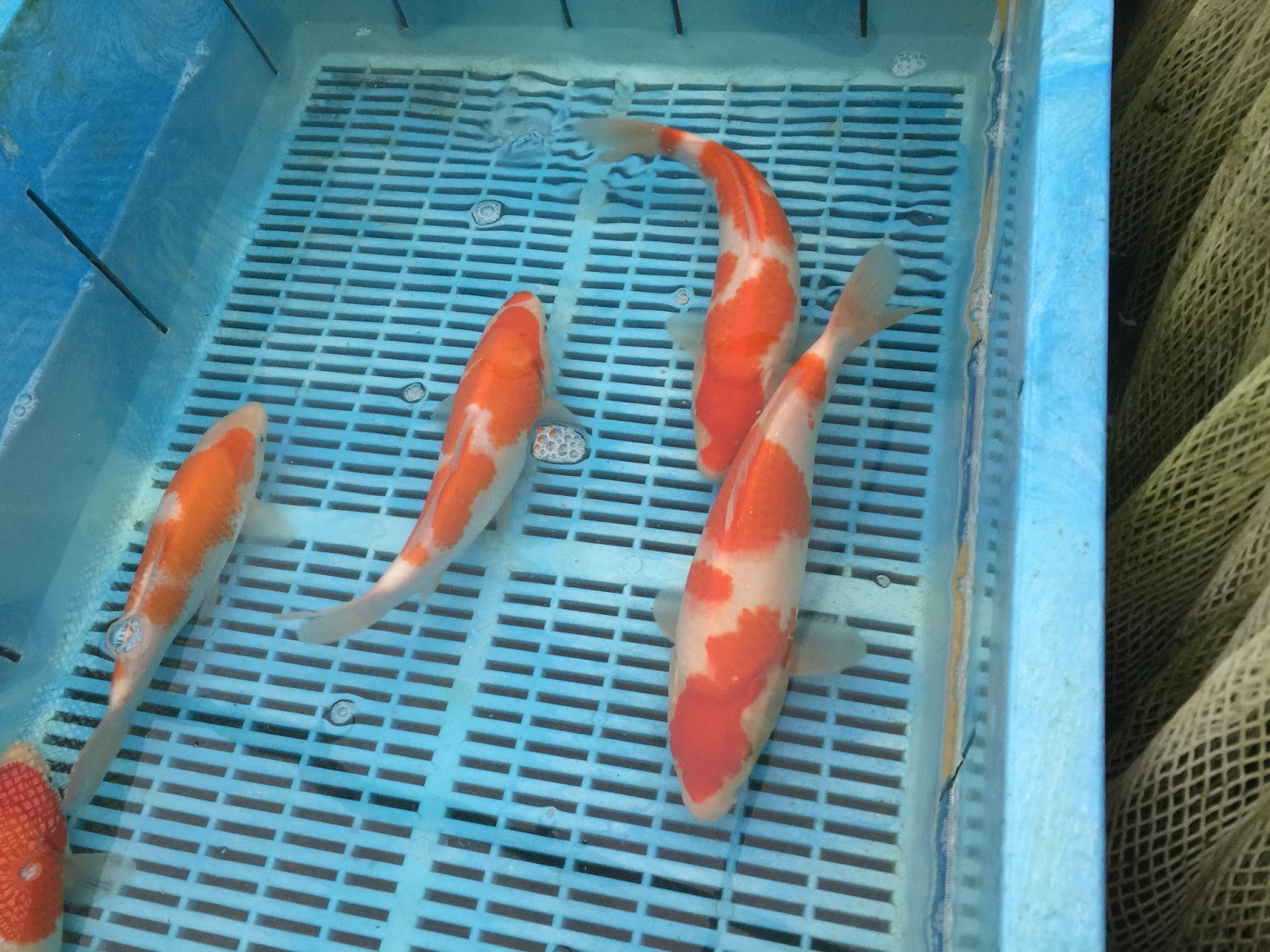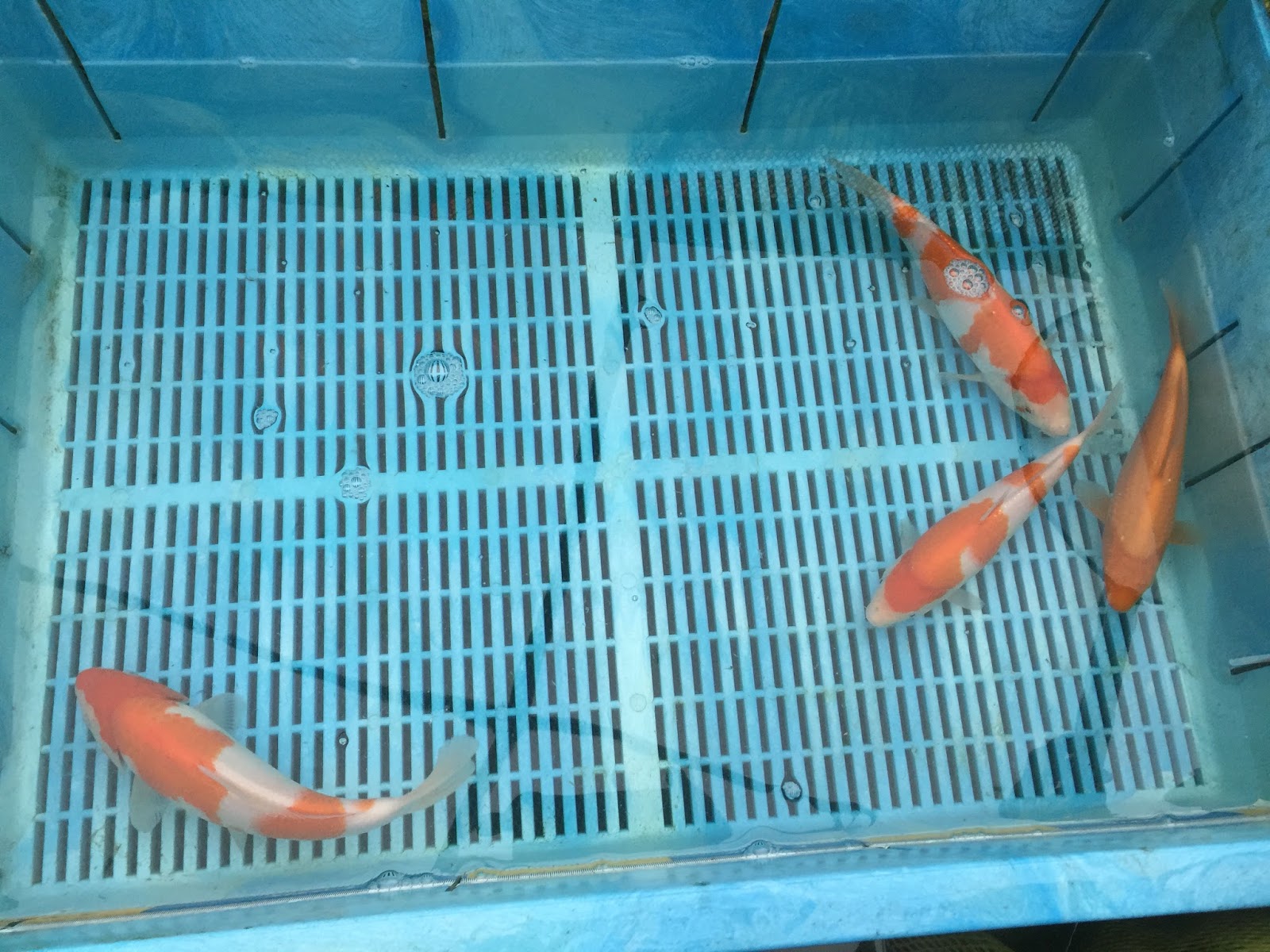 ok, a little convoluted... but, we do have an audit trail! a rule of thumb when looking at these photos is that if the koi is on the orange side - it's probably from the july 16 spawning. the reds are less well developed, partly because they are younger, and partly because the green vortex tank they've been raised in was covered.