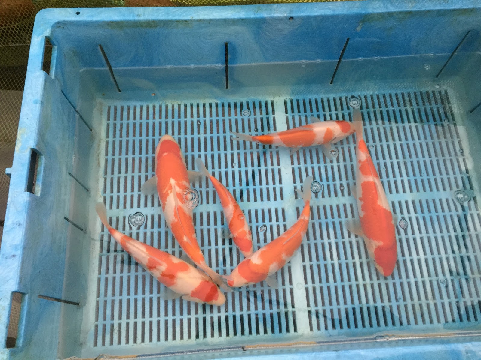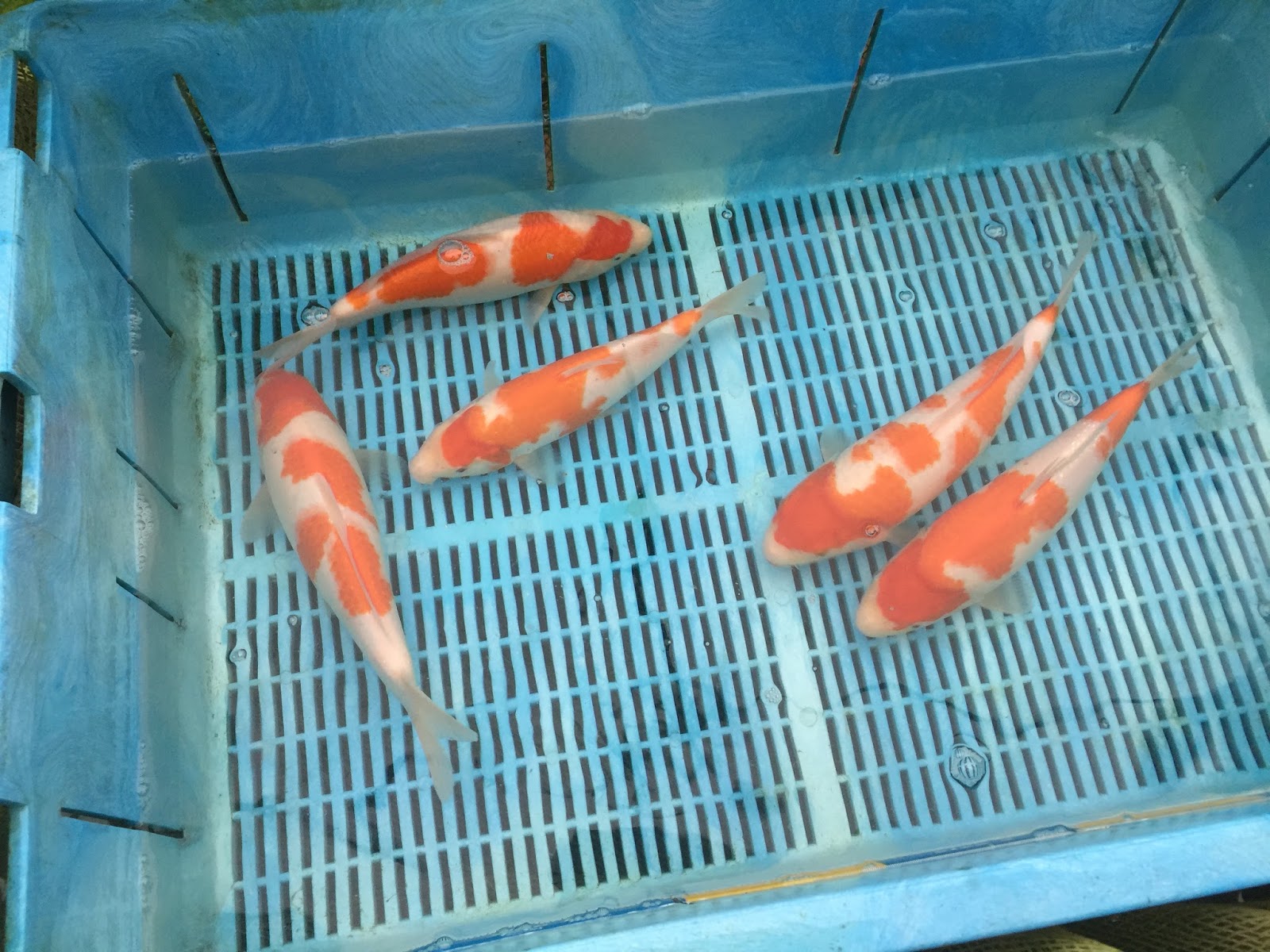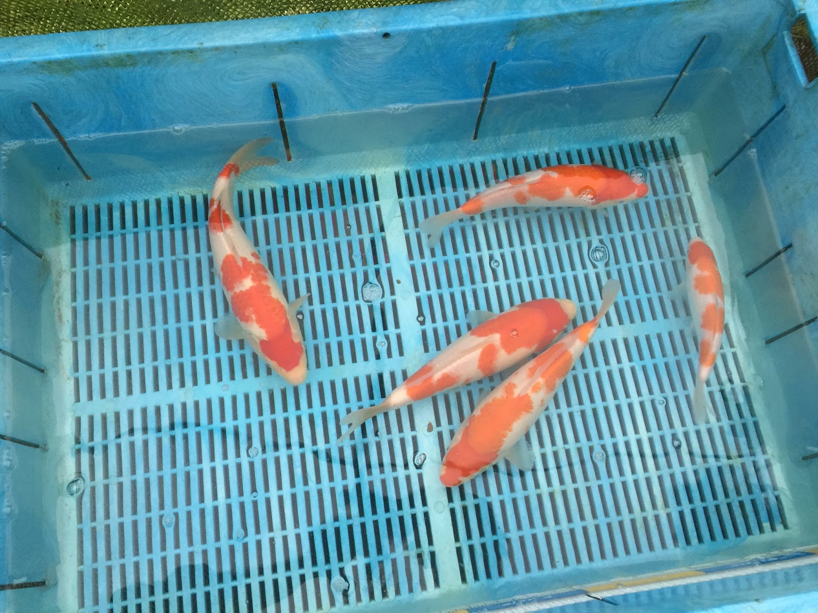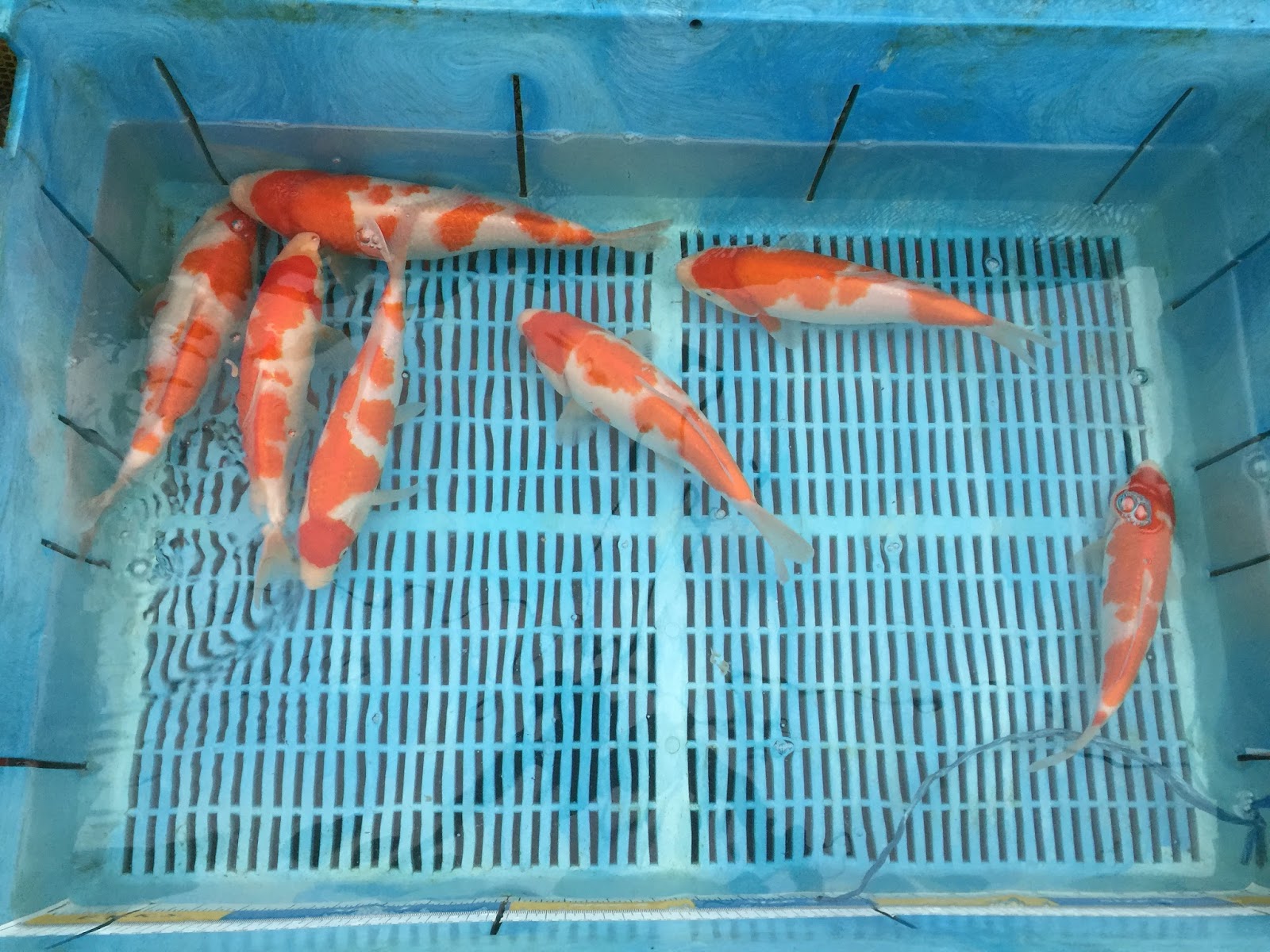 ok, a little convoluted... but, we do have an audit trail! a rule of thumb when looking at these photos is that if the koi is on the orange side - it's probably from the july 16 spawning. the reds are less well developed, partly because they are younger, and partly because the green vortex tank they've been raised in was covered.