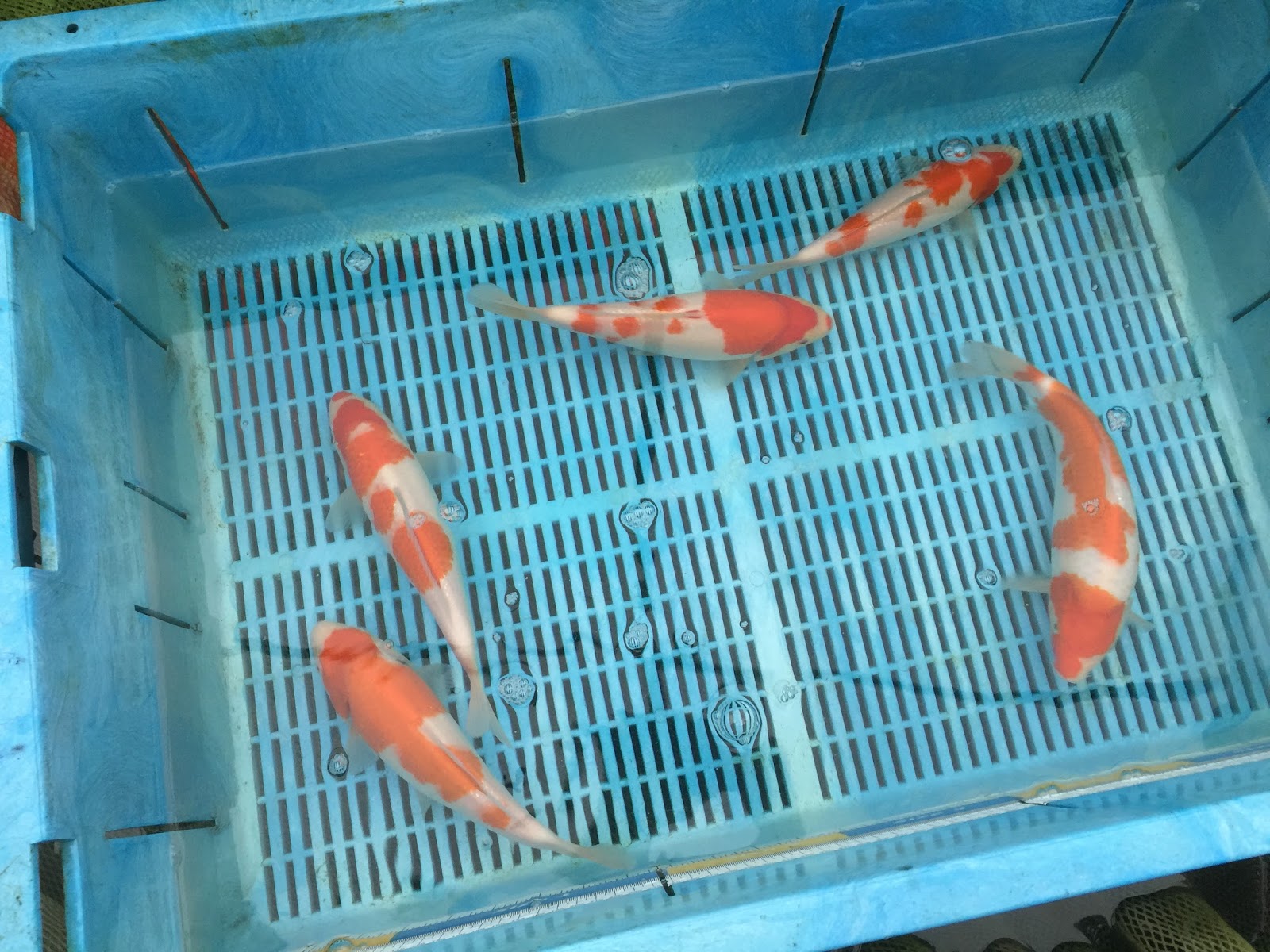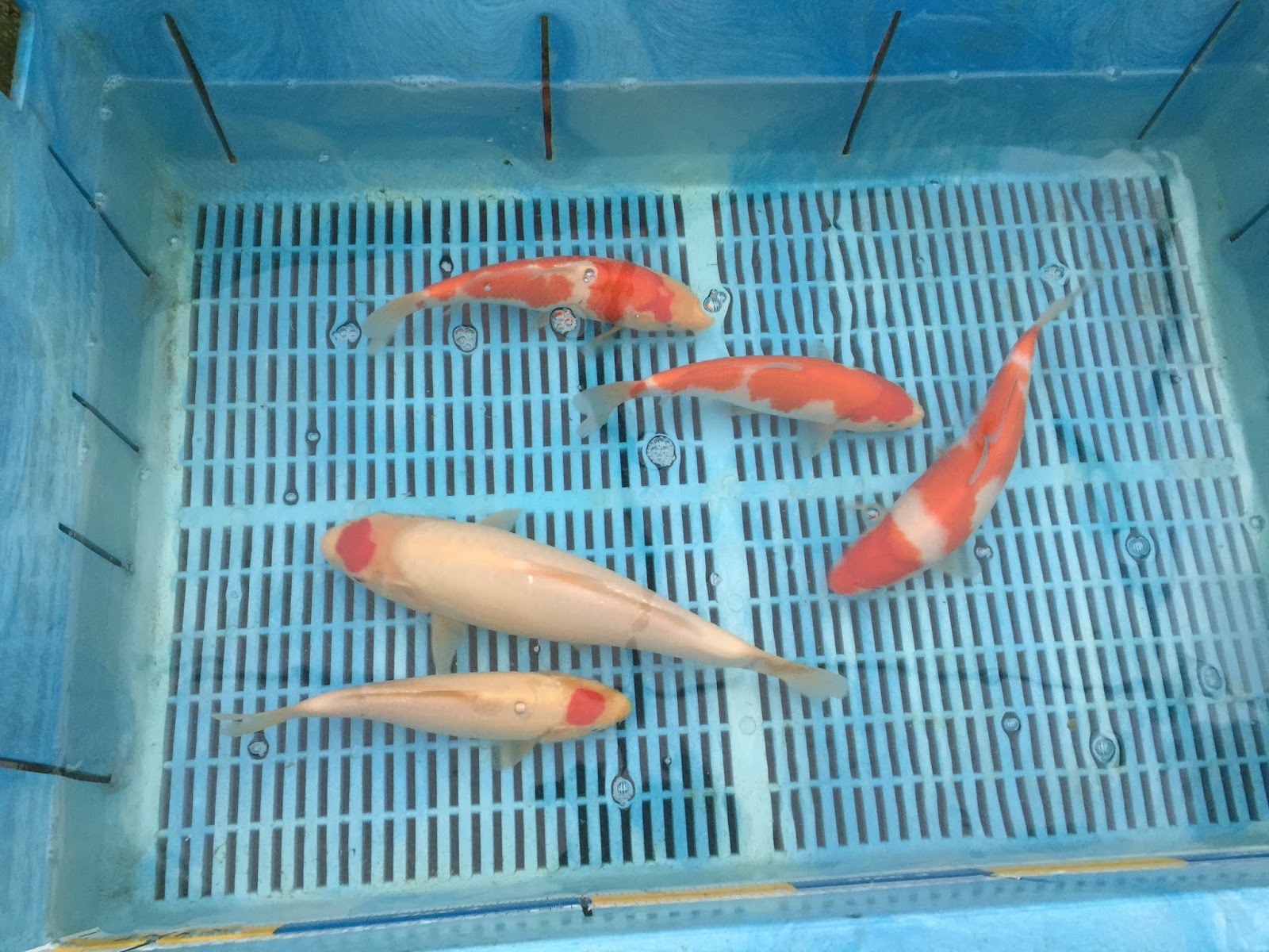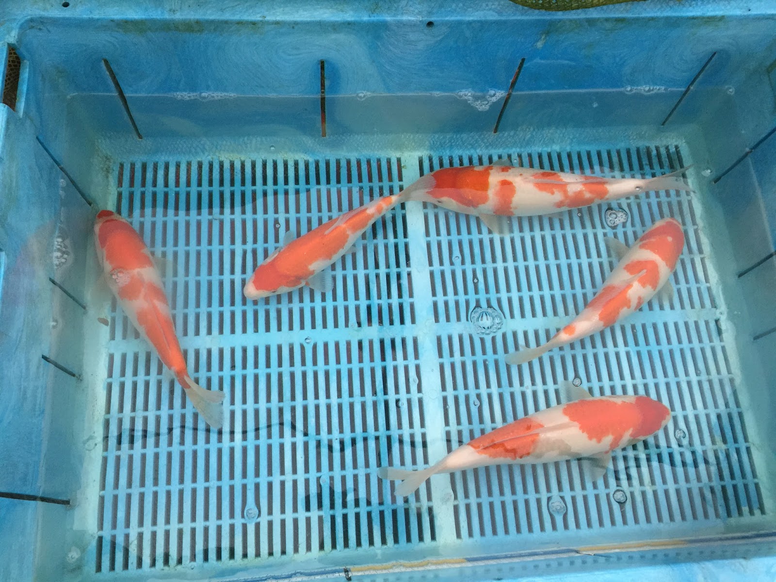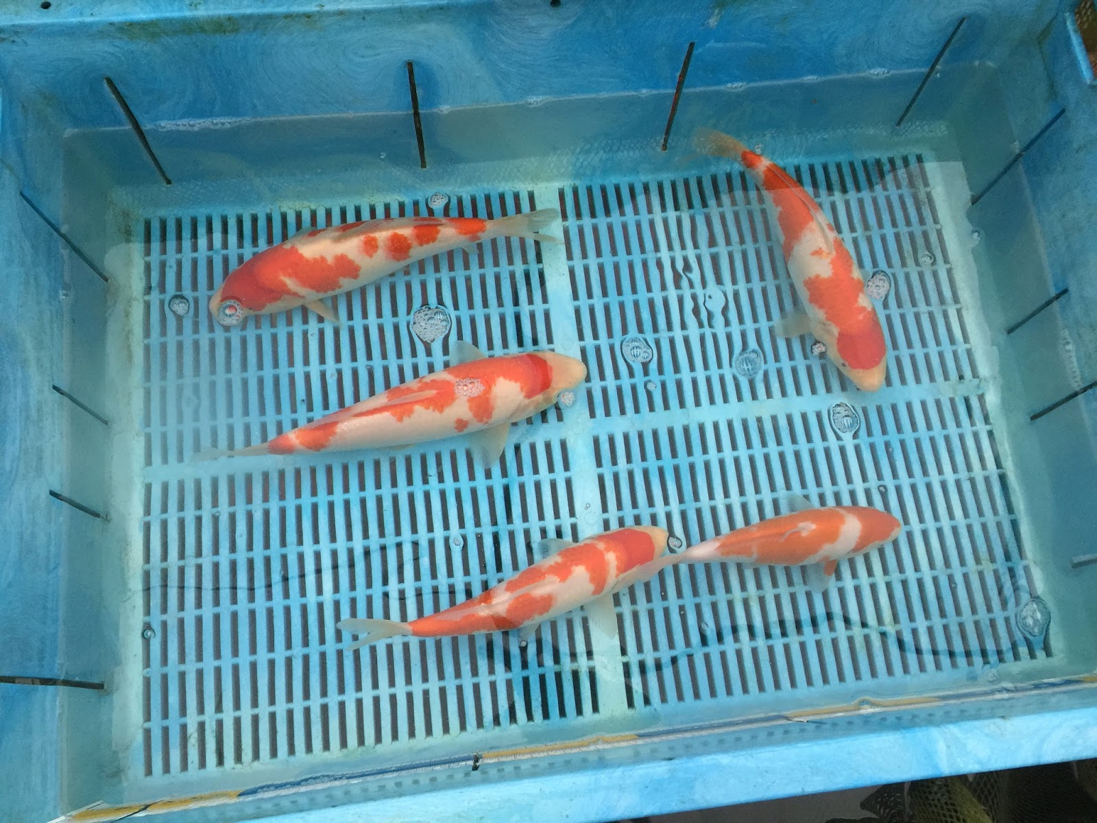 ok, a little convoluted... but, we do have an audit trail! a rule of thumb when looking at these photos is that if the koi is on the orange side - it's probably from the july 16 spawning. the reds are less well developed, partly because they are younger, and partly because the green vortex tank they've been raised in was covered.