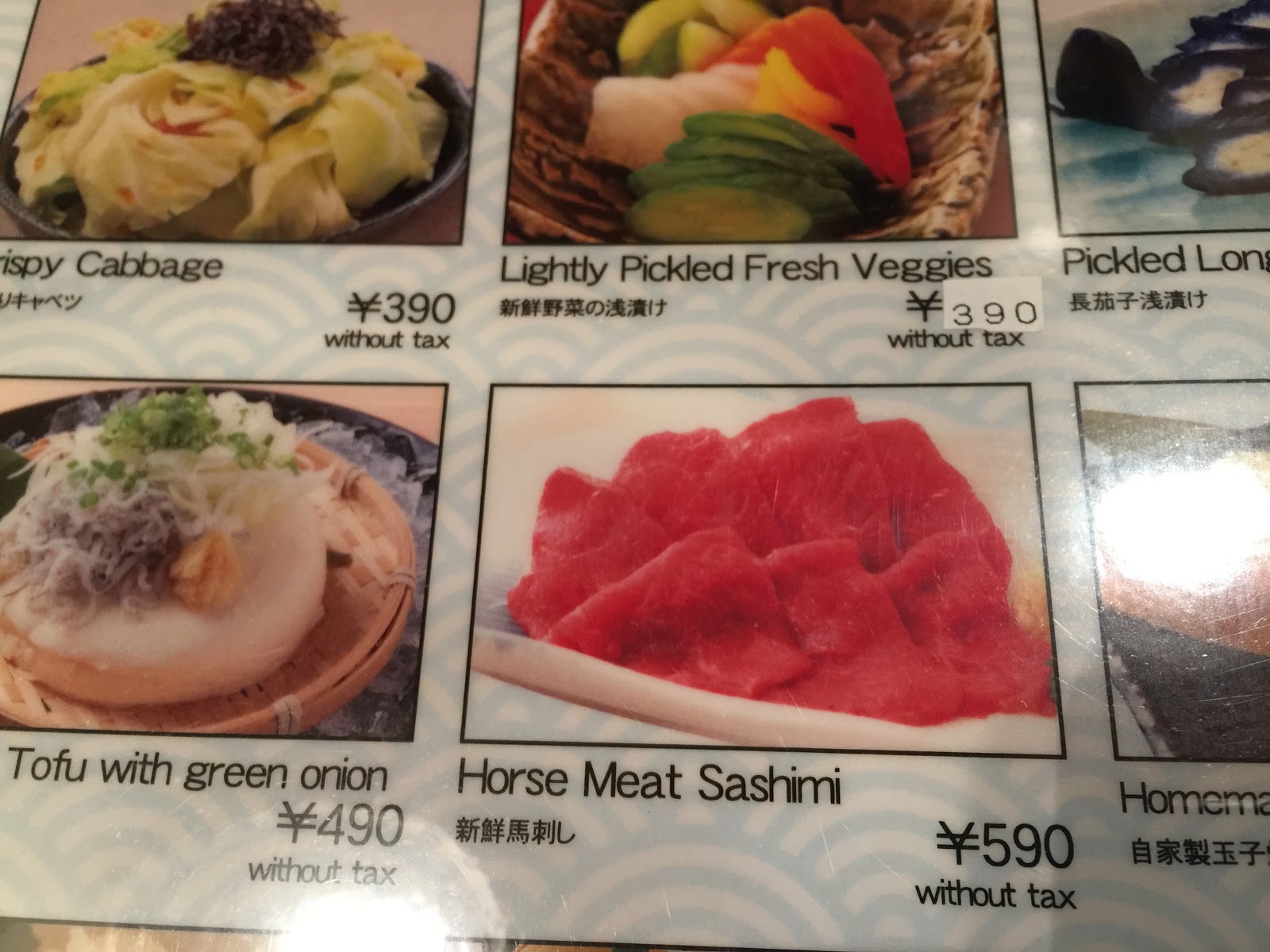 We squeezed in one more koi farm on our way back to the hotel.. And in the evening, we headed out to a local food place and delved into the japanese food on the menu. Some of the items were a little out there for out palettes, and, to give you an idea, here are some pictures of some of the more usual items available on the menu: