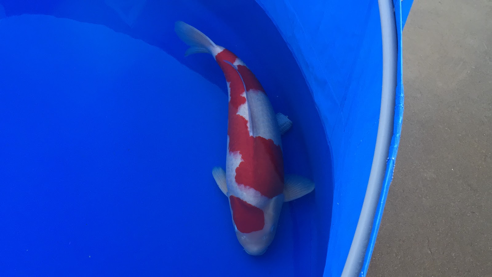 The auction process was as follows - a koi is taken from the show vat, and placed in a blue circular inspection bowl, which itself is sat on top of a trolley cart.