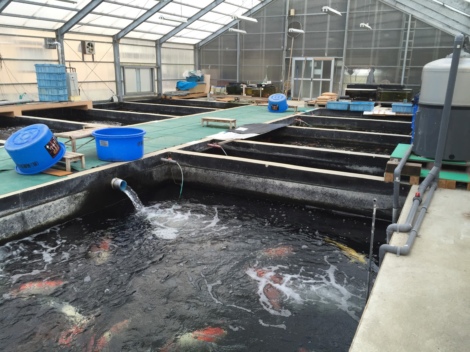 After the auction, we popped into Isa on the way to the Ojiya koi show; I just had to see those ponds of sansai and yonsai showa once more...