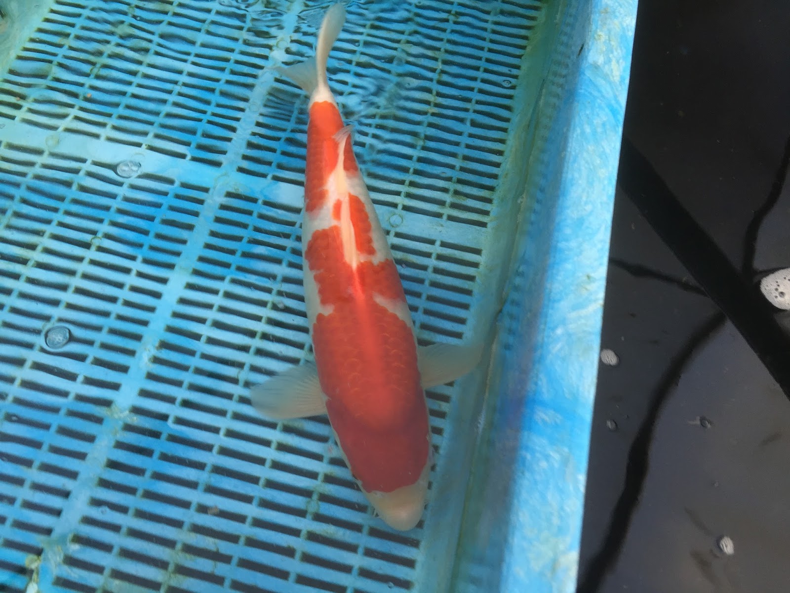 You'll probably remember this first one, a maruten that measured 35.5cm at the end of April when it made it through tosai selection and was granted a spot to grow on this summer in the females pond. I checked up on a few months ago when it was 40cm. And now, 48cm. I'm hoping this will surpass 50cm before Christmas.