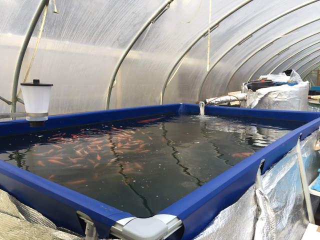 The other big developments have been erecting a brand new polytunnel – a little smaller, but similar in size to our existing one. We will probably use this new space this year for additional fry rearing capacity, but the plan for this new space is to house our brood fish, and become a spawning and egg rearing hub.