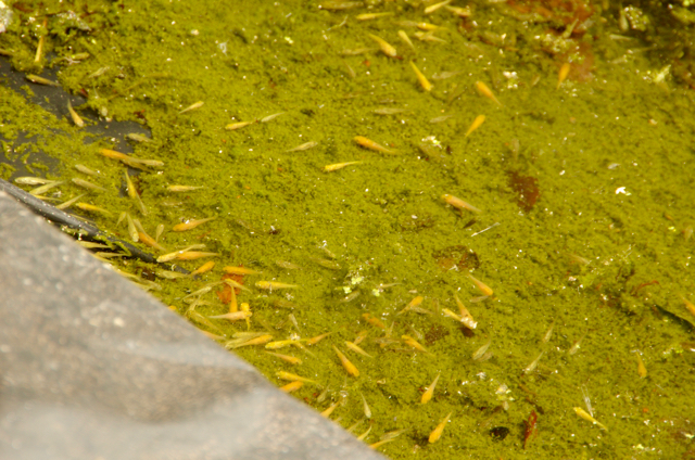 Trudy babies doing well in the fry pond. This is the 3rd use of our top fry pond this year which would be a new record for the number of times we're able to use the pond in a season... Just need a few more warmish weeks and we'll be at first selection size