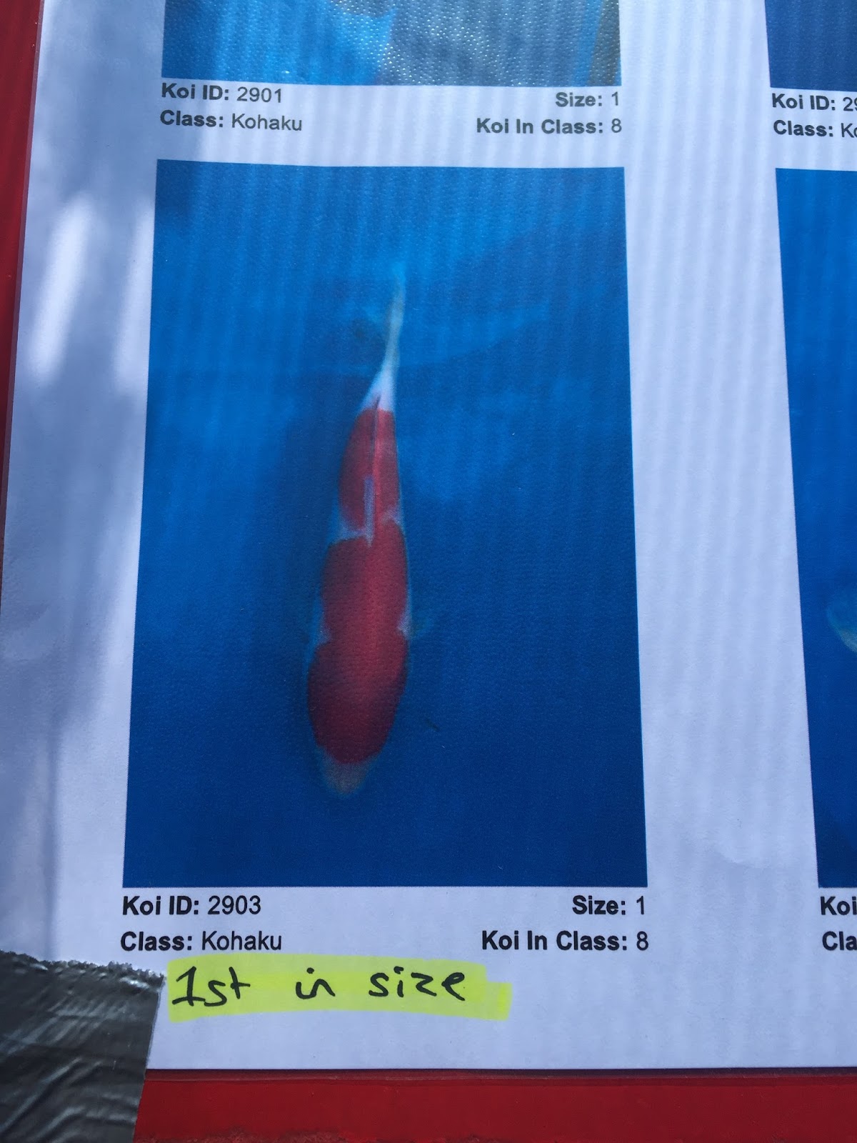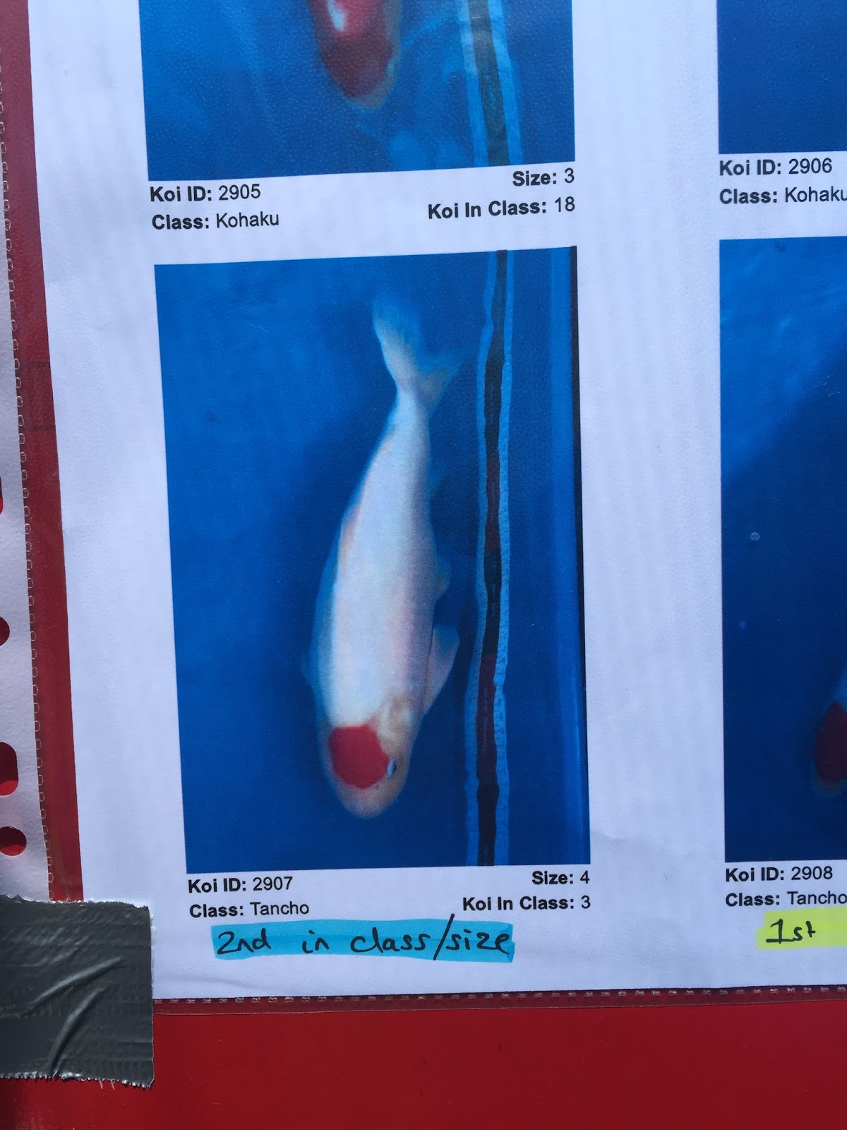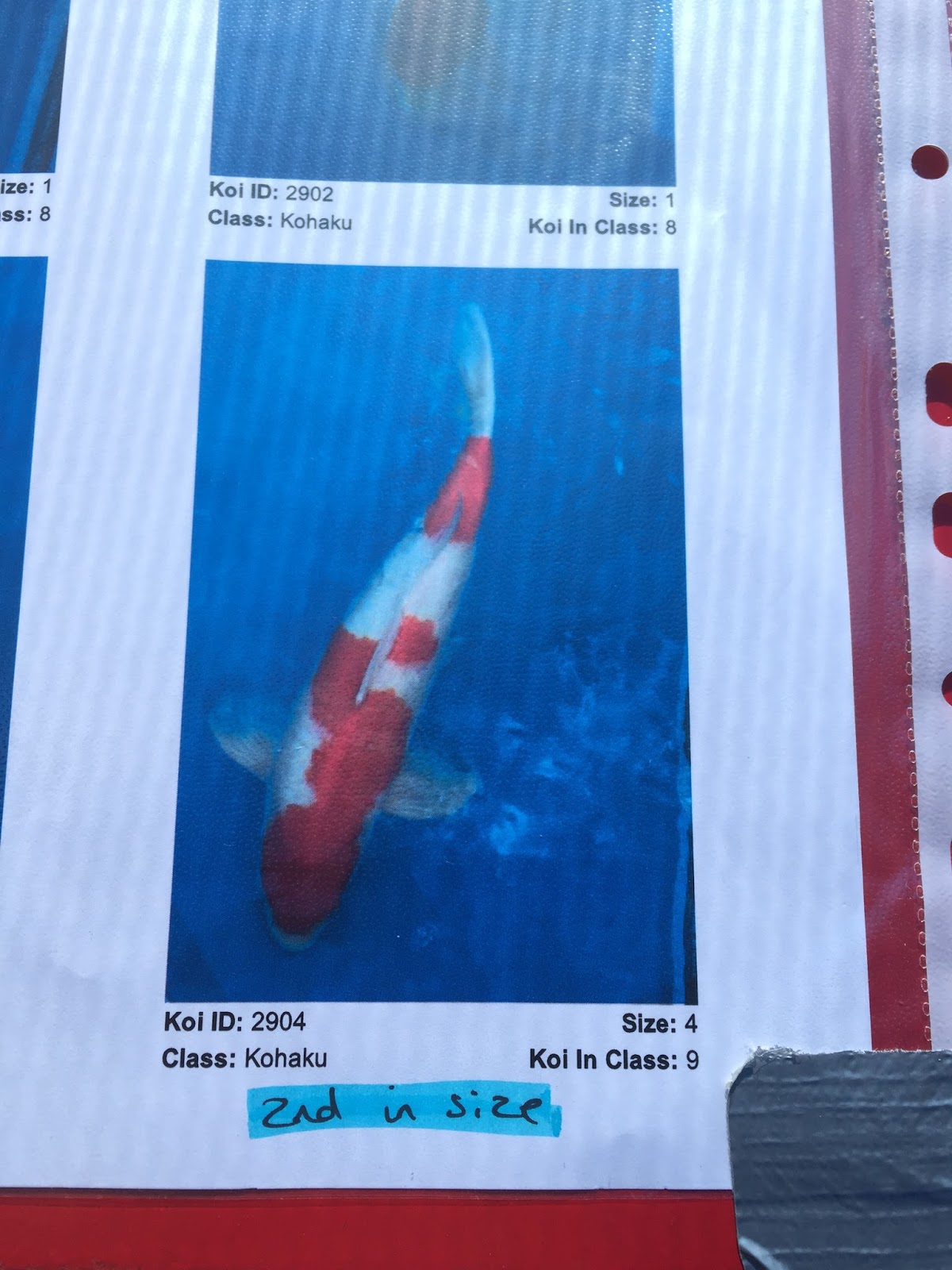I dont have great photos of the best in size 1, or the 2nd in size 4 koi - and will dig something out later this week. those fish are shown on the pictures of the benching photos at the top of this post, and you get a glimpse of those fish in the video.