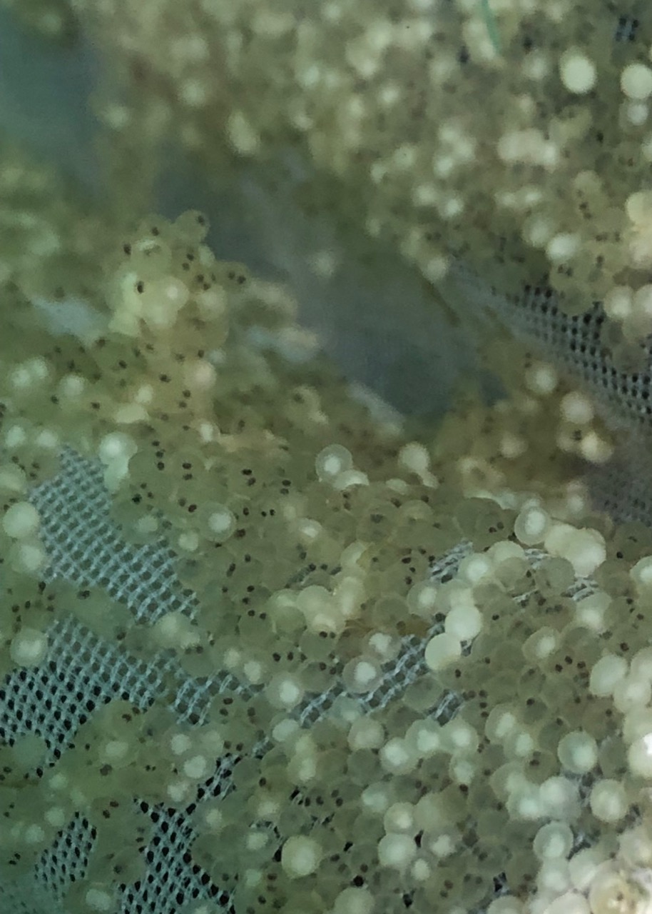 The next spawning was with Rosie – and I repeated the May 2016 spawning. This year, Rosie has far fewer eggs then in previous years. She spawned first night, but none of the eggs were fertilised!