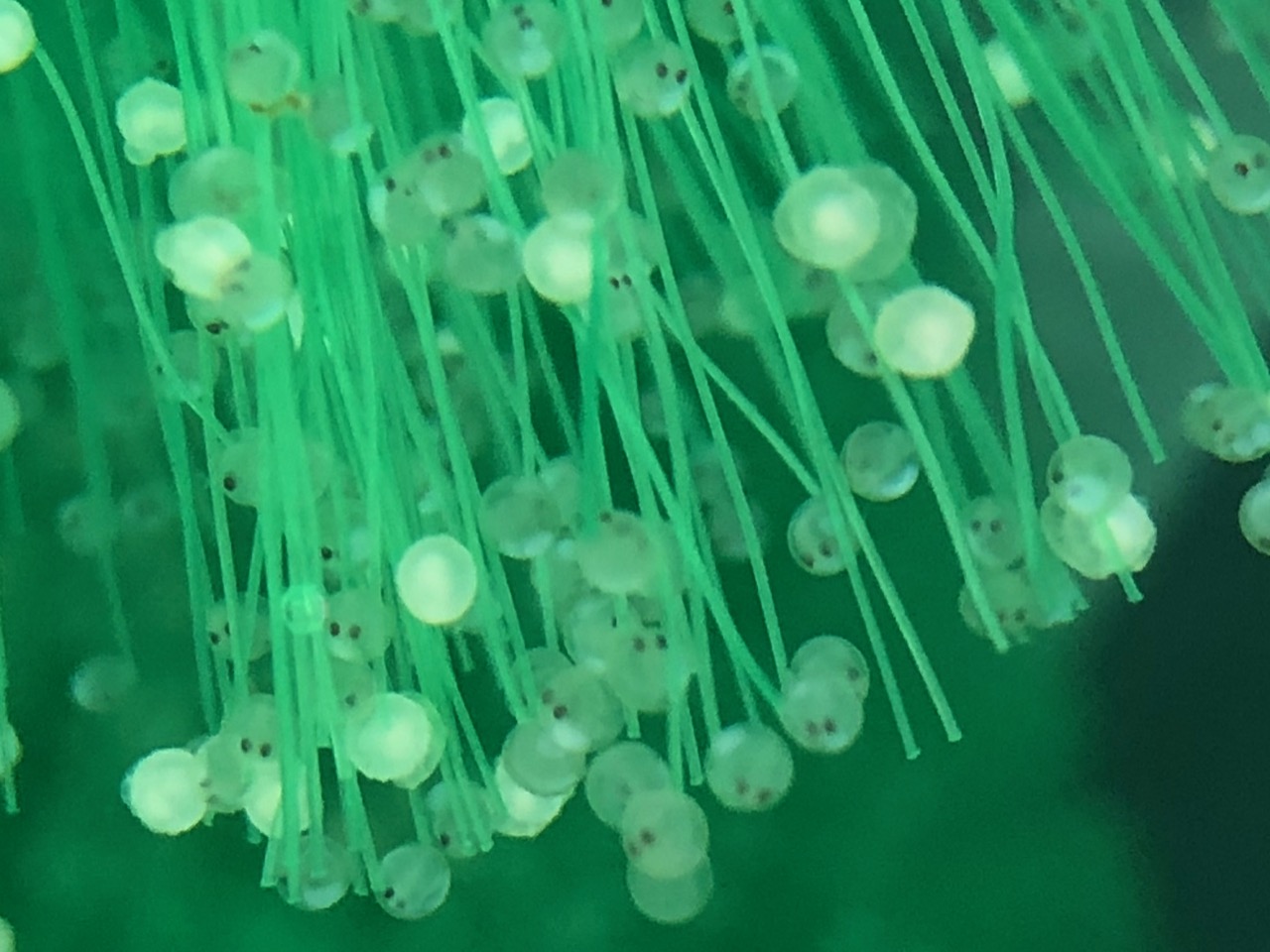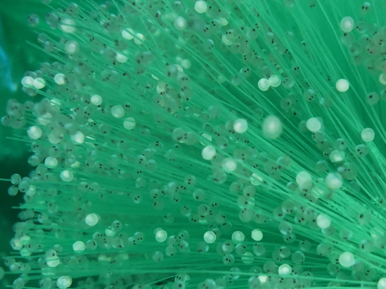 On day 3 following the spawning, we have tiny hatchlings. You can make out 2 of them in the centre of this picture. |